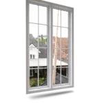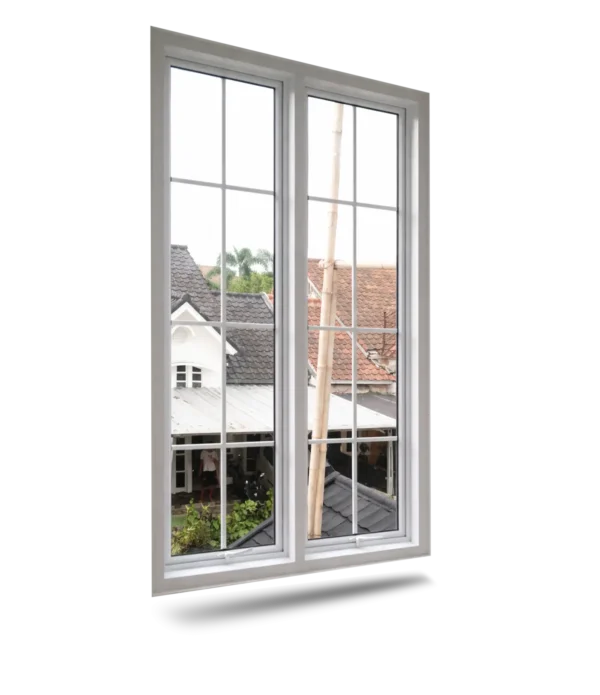 Jendela berbingkai aluminium yang elegan dengan desain kisi simetris yang meningkatkan estetika interior dan pemandangan eksterior.