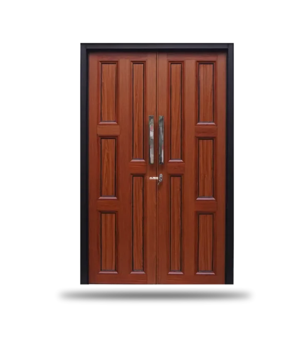 Pintu Ganda Klasik Walnut Grand menghadirkan desain pintu ganda abadi dengan detail panel elegan yang menonjolkan lapisan kayu walnut yang mewah.